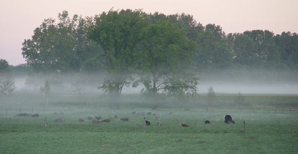 We found our farm near Knox, Indiana in 1997, and committed to raising our family in the healthiest enviroment we could. We have used no pesticides in our fields and vineyards. Our livestock is "grass-fed" on our lush pastures and wintered on hay we have grown here too. If we would not feed it to our children, clothe them in it, or drink it while we look over the view you see here - we would not offer it for sale to you, our customers.