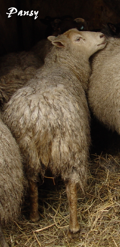 We purchased Pansy for her long lustrous primitive fleece. We did not really plan to breed her because of her poor tail, but look what we got when we bred her to Nureyev. This little one's fleece is nothing short of silky and spectacular, and her tail is acceptable.